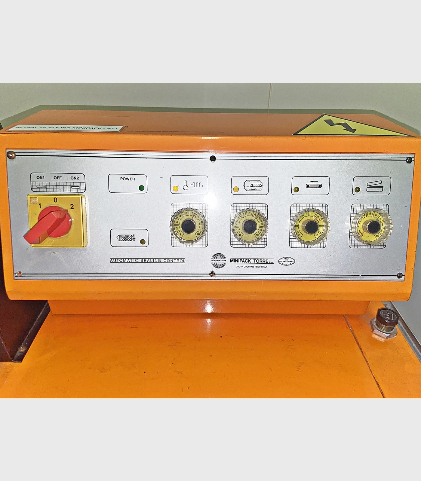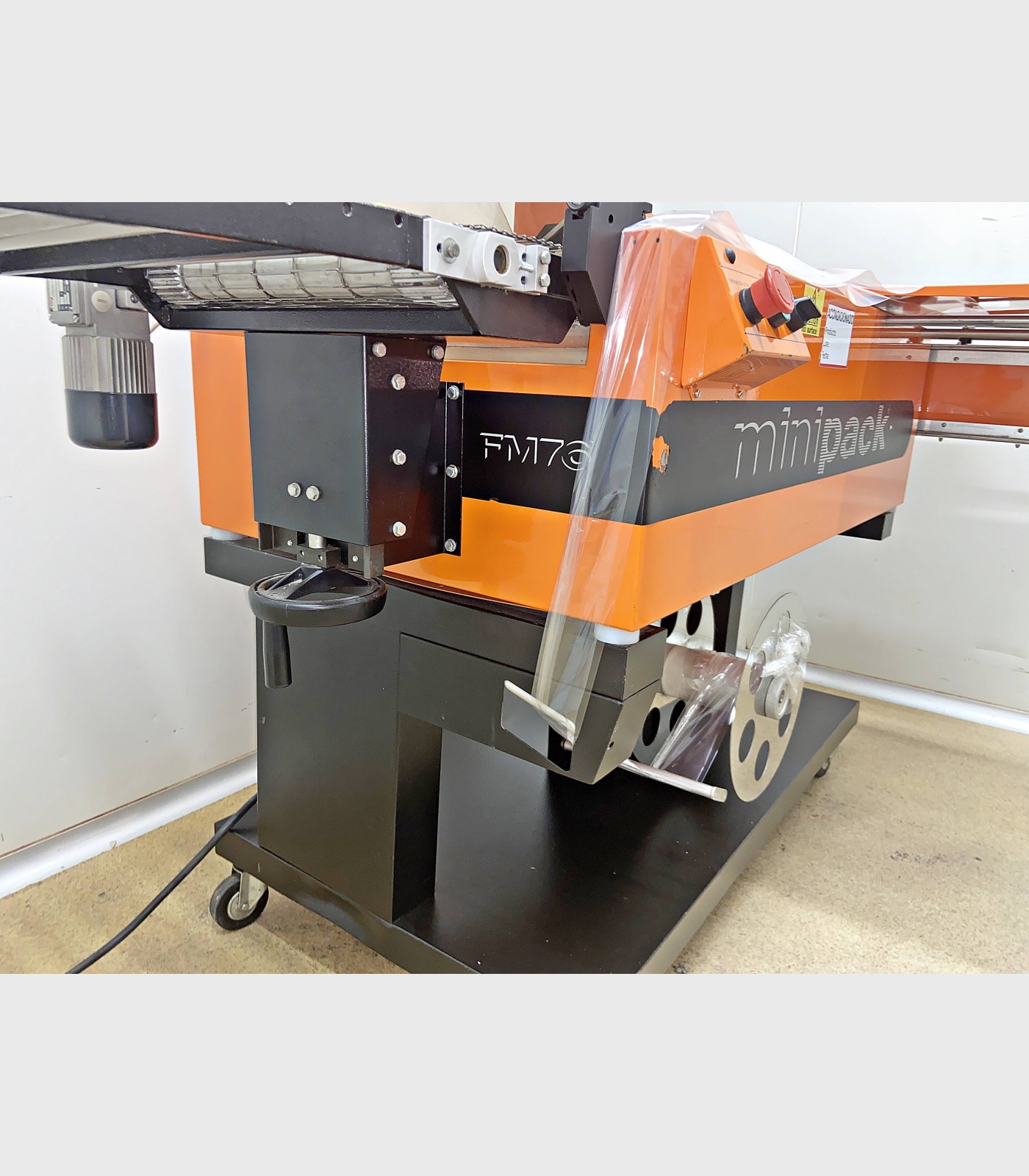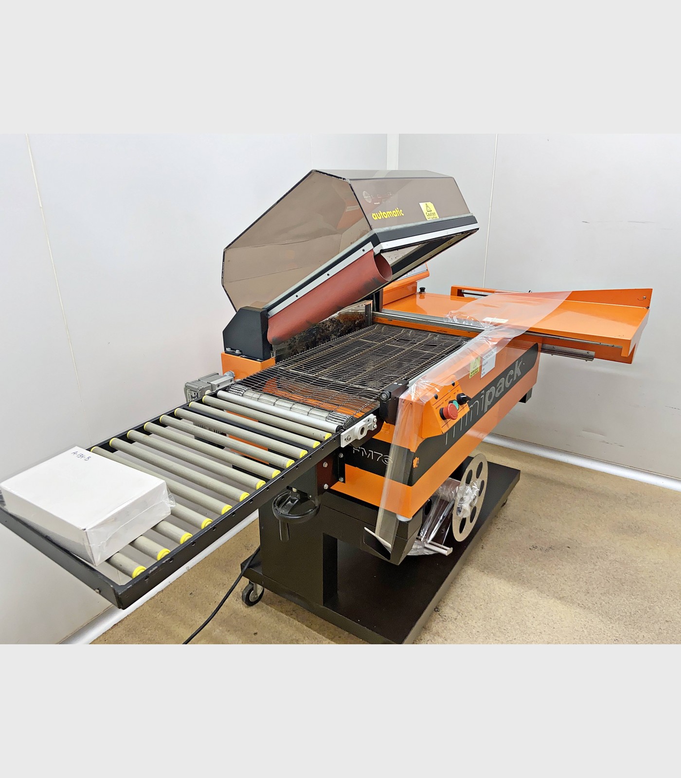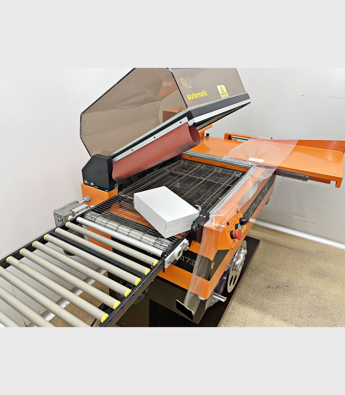 Retractiladora marca Minipack. Selladora y cámara de retractilado con una superficie de sellado de 540 X 390 mm y con una altura máxima de producto de 240 mm.