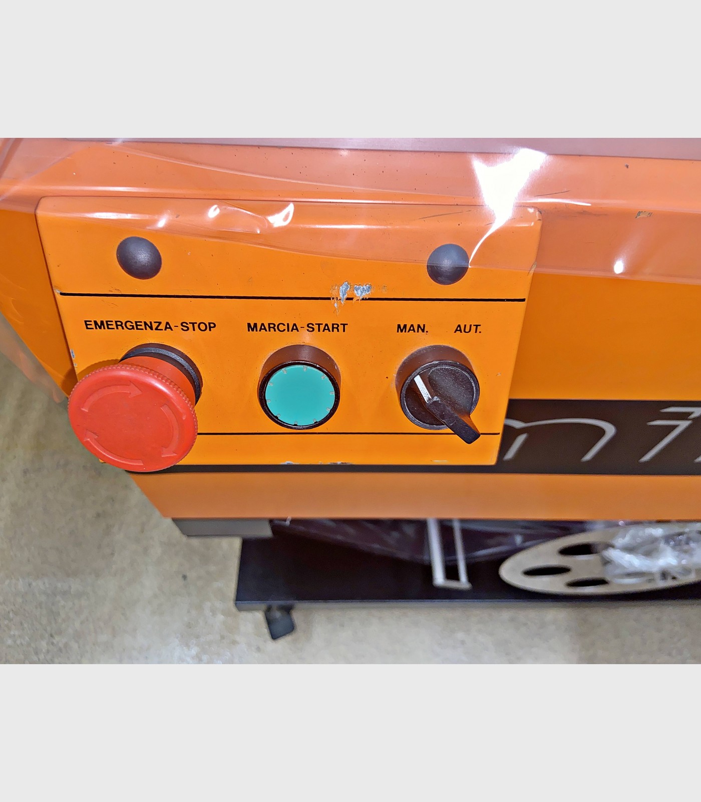 Mandos mediante botonera frontal, con selector de paro/marcha y luz verde, con botón de parada de emergencia.
